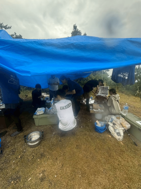 みんなで作り上げた25人キツキツの雨除けは、何気に頑丈で、3日間、みんなを守って仲良くさせてくれる居場所になりました。